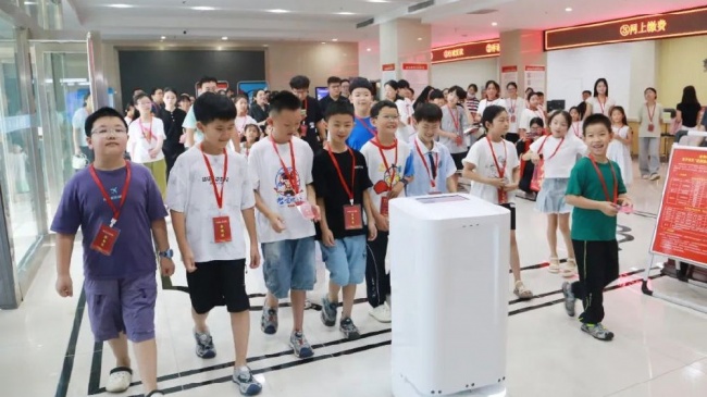 在讲解员的带领下,青少年和家长们来到了诉讼服务中心。孩子们认真聆听讲解员讲述“法”字的由来,“獬豸”的故事,了解法院的立案流程,更被灵活穿梭的智能送卷机器人深深吸引,体验科技赋能司法服务的魅力。