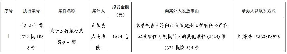 关于向案外人发放执行案款信息的公示