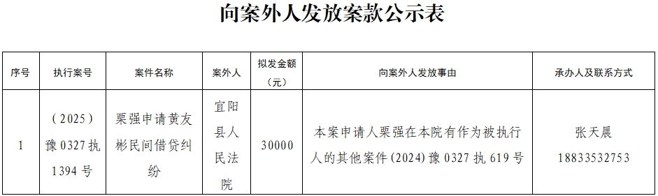 公示 | 宜阳县人民法院关于向案外人发放案款案件的公示
