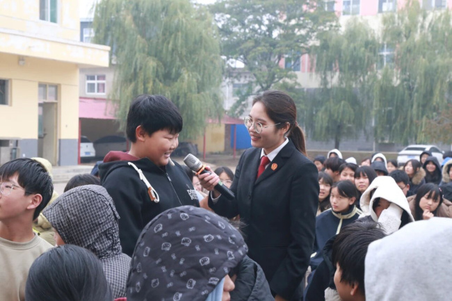 同时,宣讲员杜旭燕结合未成年人权益保护、校园欺凌应对、网络安全防护等高频场景,用真实案例的拆解法律条文,用沉浸式的互动加深理解。告诉同学们当遇到校园欺凌时要依法维权,不做欺凌者,不做受害者,也不做旁观者。