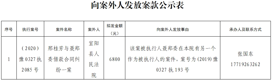 公示 | 宜阳县人民法院关于向案外人发放案款案件的公示