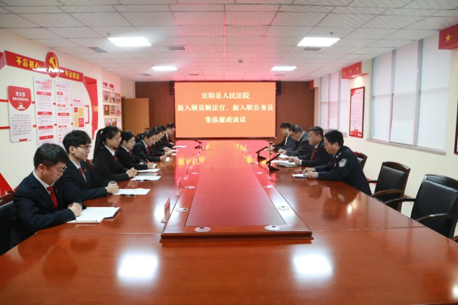 为进一步增强新任职人员的廉洁自律意识,筑牢拒腐防变思想防线,11月6日,宜阳县人民法院召开新入额法官、新入职公务员集体廉政谈话会。
