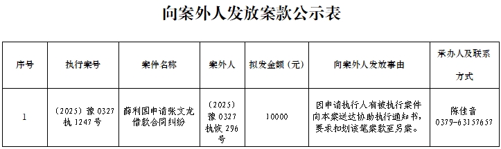 附:向案外人发放执行案款信息