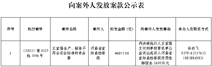 公示 | 宜阳县人民法院关于向案外人发放案款案件的公示