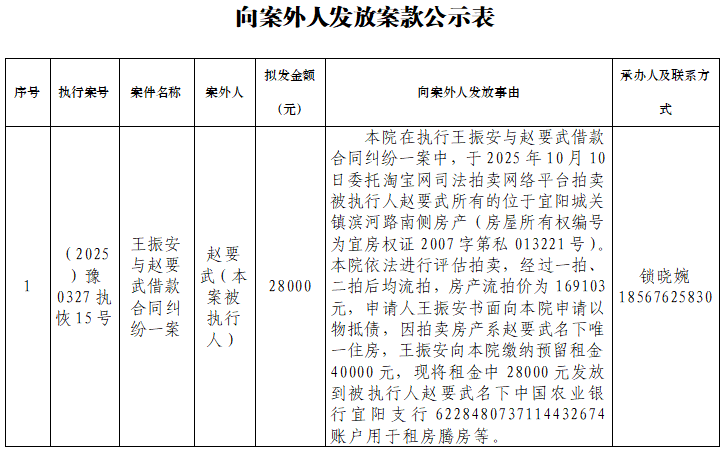公示 | 宜阳县人民法院关于向案外人发放案款案件的公示