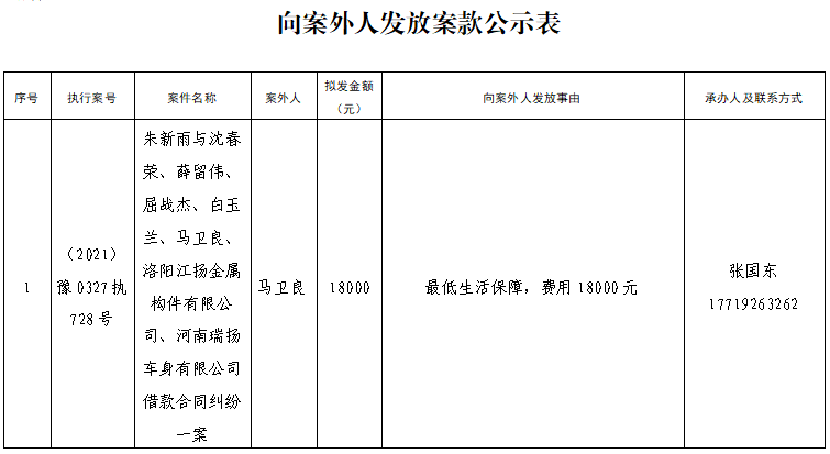 公示 | 宜阳县人民法院关于向案外人发放案款案件的公示
