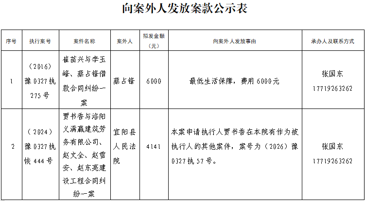 公示 | 宜阳县人民法院关于向案外人发放案款案件的公示