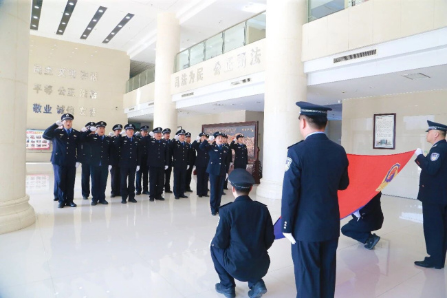 警旗猎猎,誓言铿锵;藏蓝闪耀,使命在肩。在第六个中国人民警察节来临之际,1月9日,宜阳县人民法院司法警察大队组织开展庆祝第六个中国人民警察节系列活动,向坚守在司法一线的全体司法警察致以最崇高的敬意,让警魂在仪式感中淬炼,让担当在并肩同行中传递。