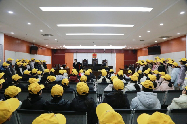 1月14日下午,宜阳县人民法院迎来了一群朝气蓬勃的客人——来自江南实验学校初中部的120余名师生。一场以“宜法暖阳 护航成长”为主题的公众开放日活动,在冬日的阳光下温情展开,为同学们揭开法院的“神秘面纱”,也在他们心中悄悄种下了法治的种子。