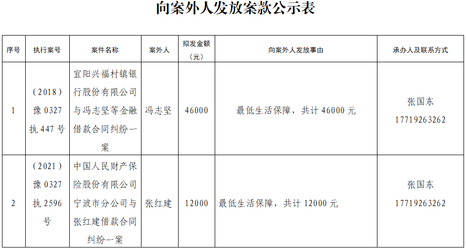 公示 | 宜阳县人民法院关于向案外人发放案款案件的公示