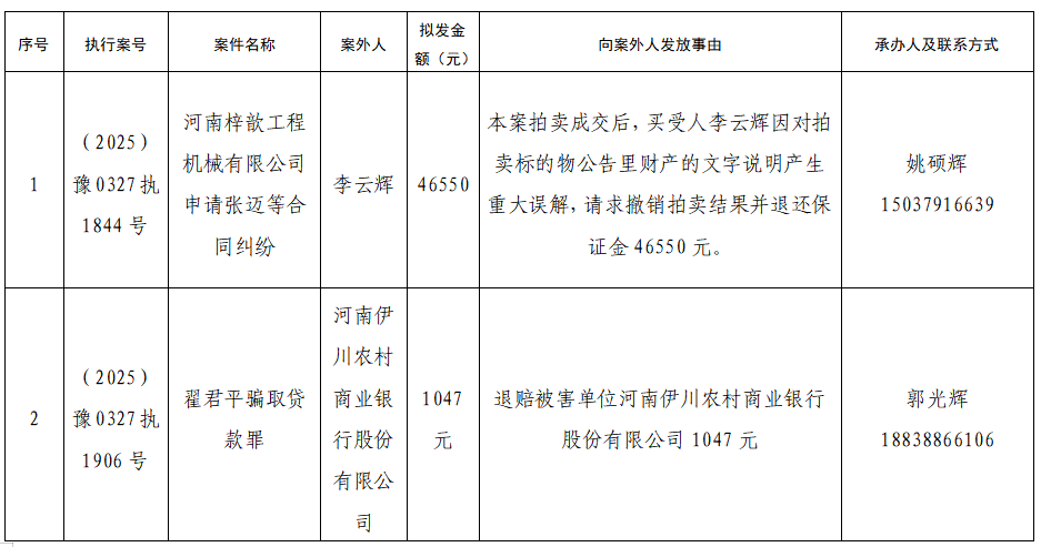 公示 | 宜阳县人民法院关于向案外人发放案款案件的公示