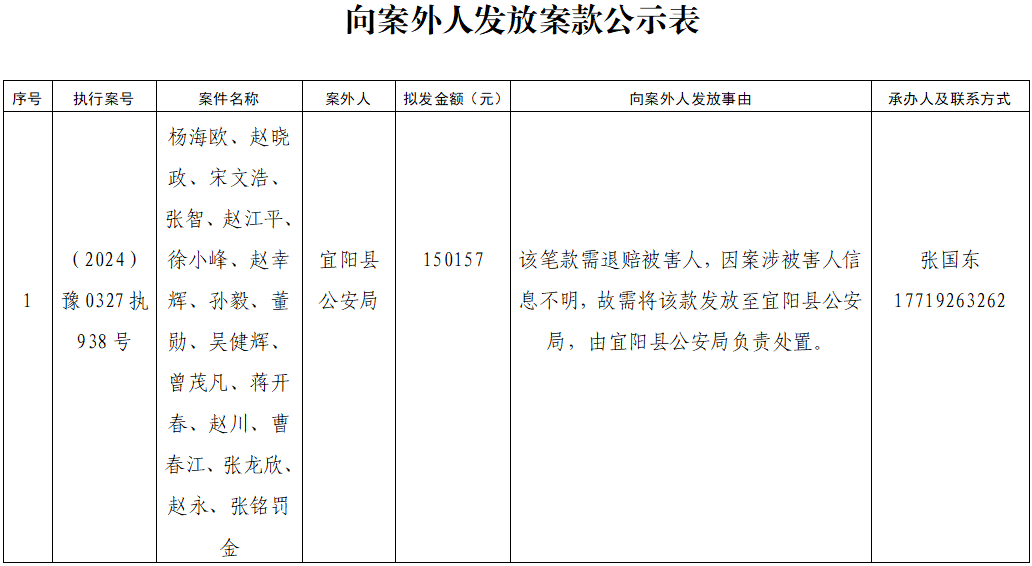 公示 | 宜阳县人民法院关于向案外人发放案款案件的公示