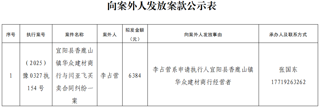 公示 | 宜阳县人民法院关于向案外人发放案款案件的公示